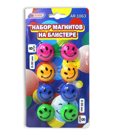 —Набор магнитов 'Смайлы' 8 шт., D-30 мм, блистер, AR-1063