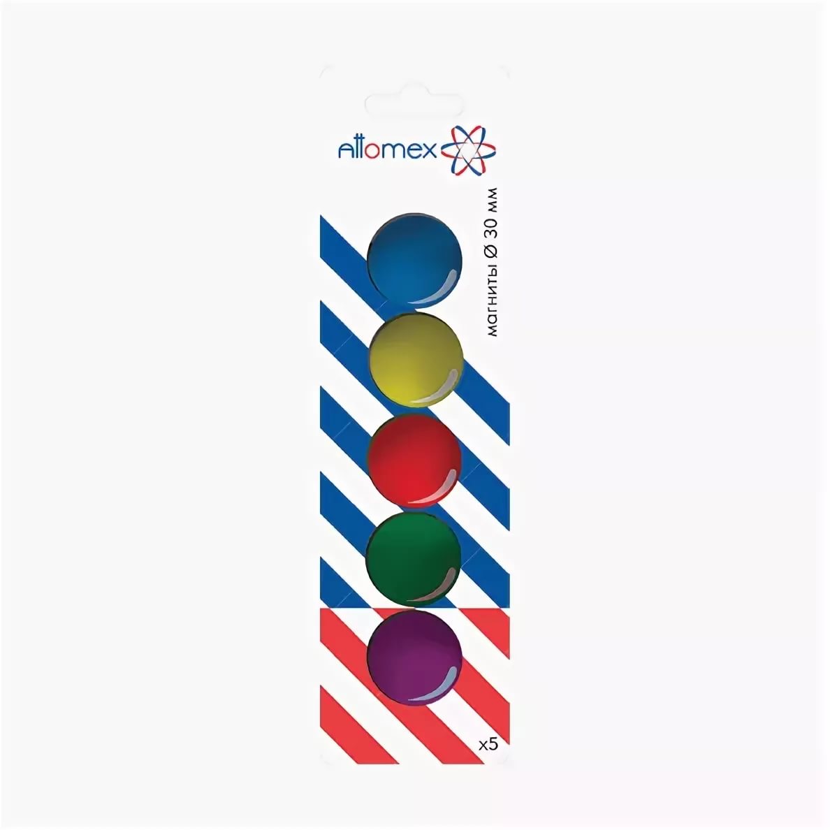 Магнит для доски офисной 'Attomex' Ø 30 мм, 5 шт, цвета ассорти, в картонном блистере, 6021701