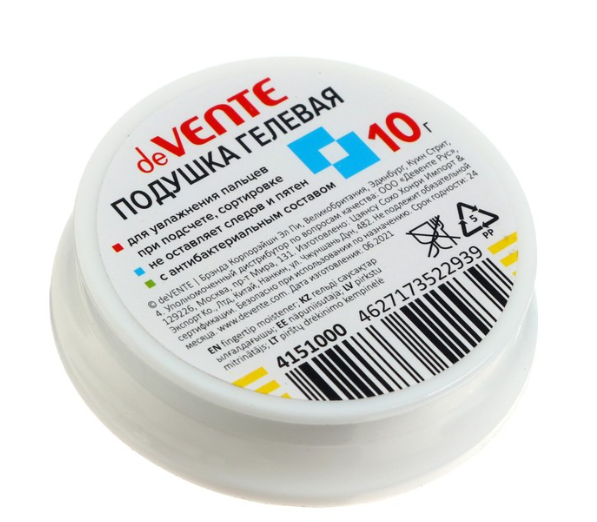 —Подушка увлажняющая для пальцев 'deVENTE' гелевая 10 г, с антибактериальным составом, белая, 4151000