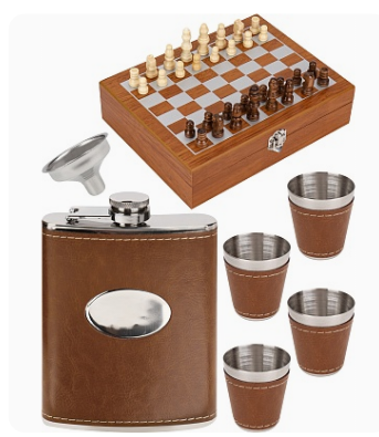 —Подарочный набор Фляжка с рюмками (4 шт, 50 мл) и шахматами Мудрость, 240 мл, 9.3х13.7х2.0, ФЛ-5793