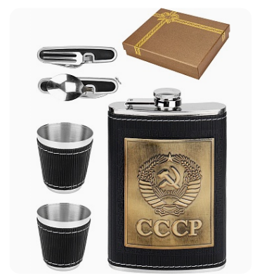—Подарочный набор Фляжка Ностальгия, 270 мл, (2 рюмки 30 мл, склад.приборы), черный, ФЛ-9603