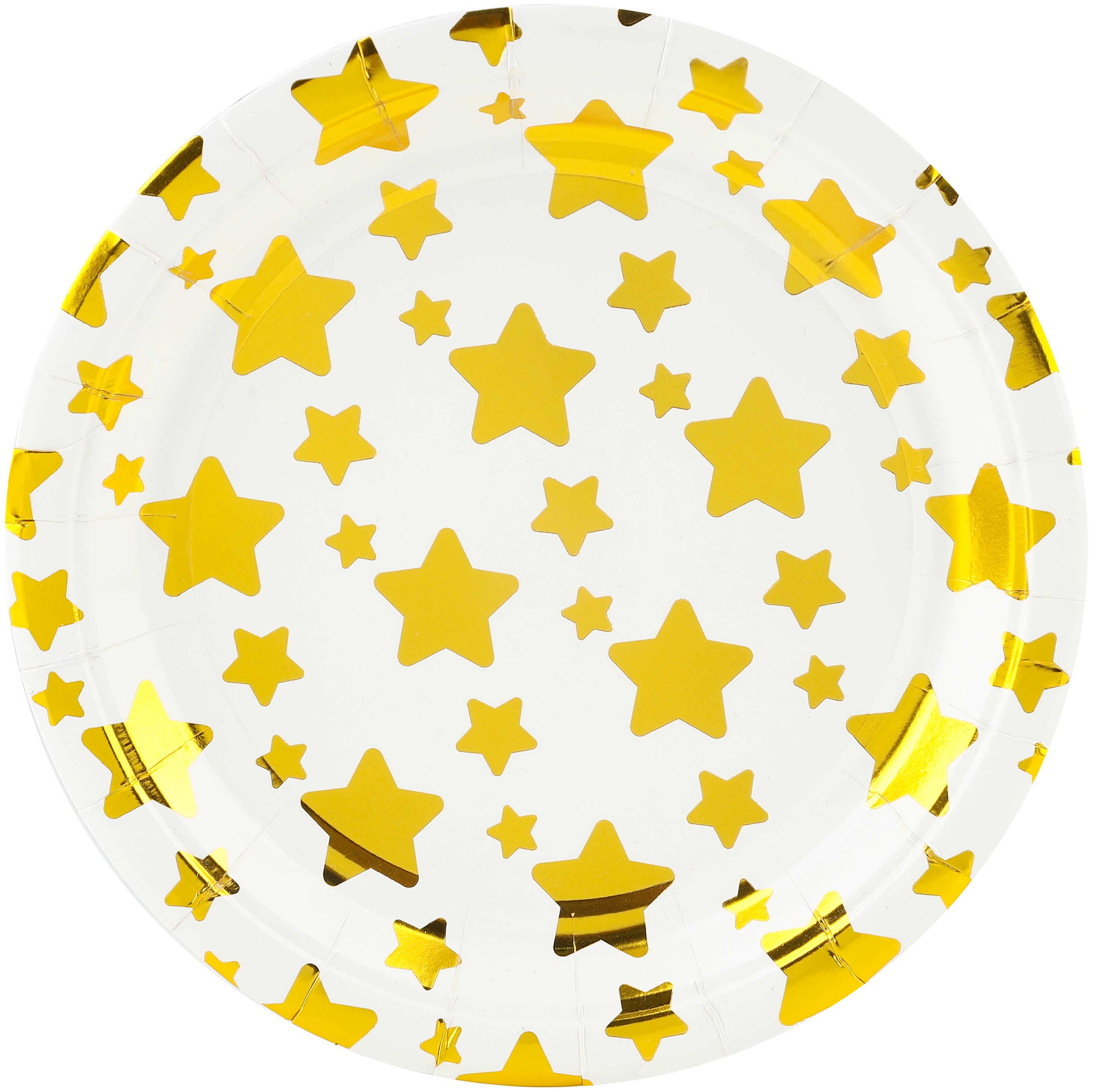 —Тарелки (9'';23 см), Звезды Микс, Белый;Золото, Металлик, (6 шт;уп), 6231903