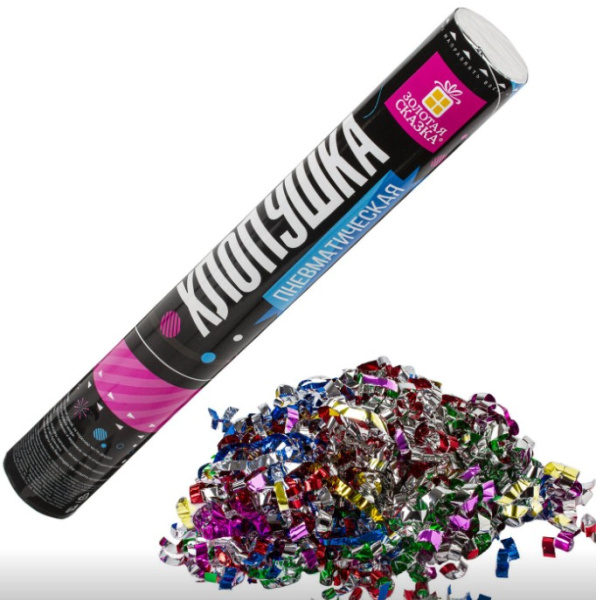 —Хлопушка пневматическая ЗОЛОТАЯ СКАЗКА 30 см, фольга, круги, ассорти, 591478