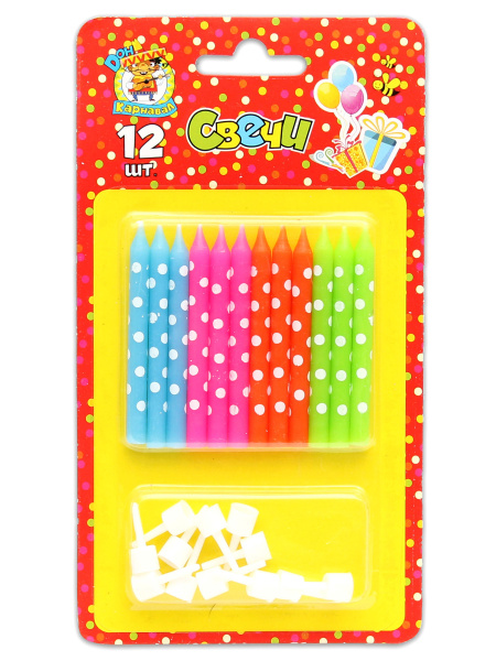 Набор свечей, Волна Веселья, Цветные, (12 шт;уп), с держателями, 620195