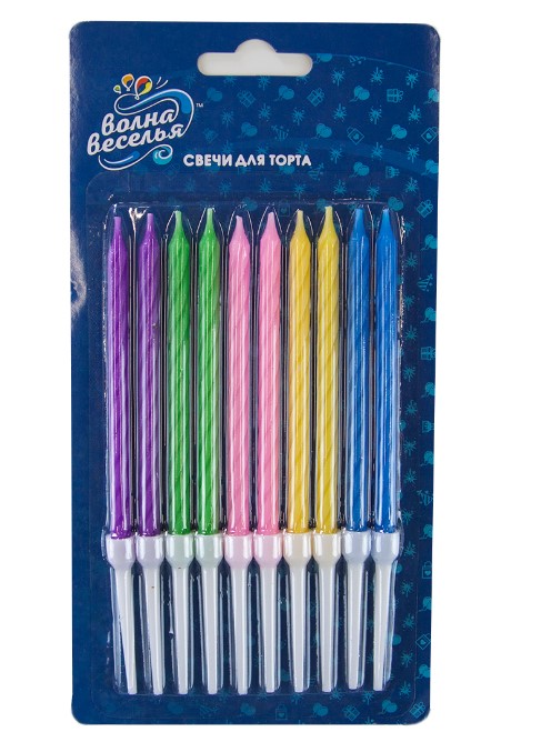 —Набор свечей, Волна Веселья, Цветные, Ассорти, (10 шт;уп), 132517