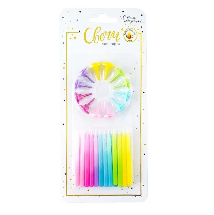 Свечи для торта с подставками 'Градиент', 24 шт., 6см., ассорти, картон. уп, 620142