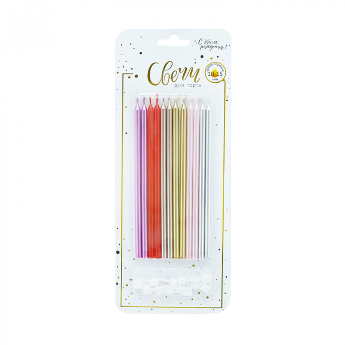 —Свечи для торта с подставками 'Микс Металл',15 см, (12 шт;уп), 620209