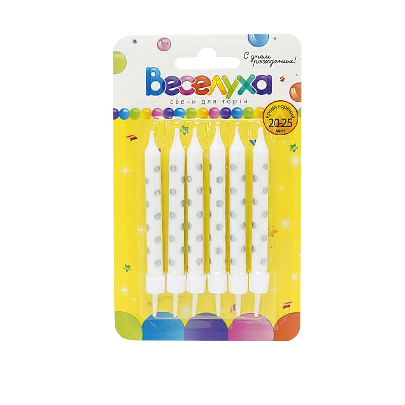—Свечи для торта с подставками 'Серебряные Точки' 6 шт 9,5 см 183548