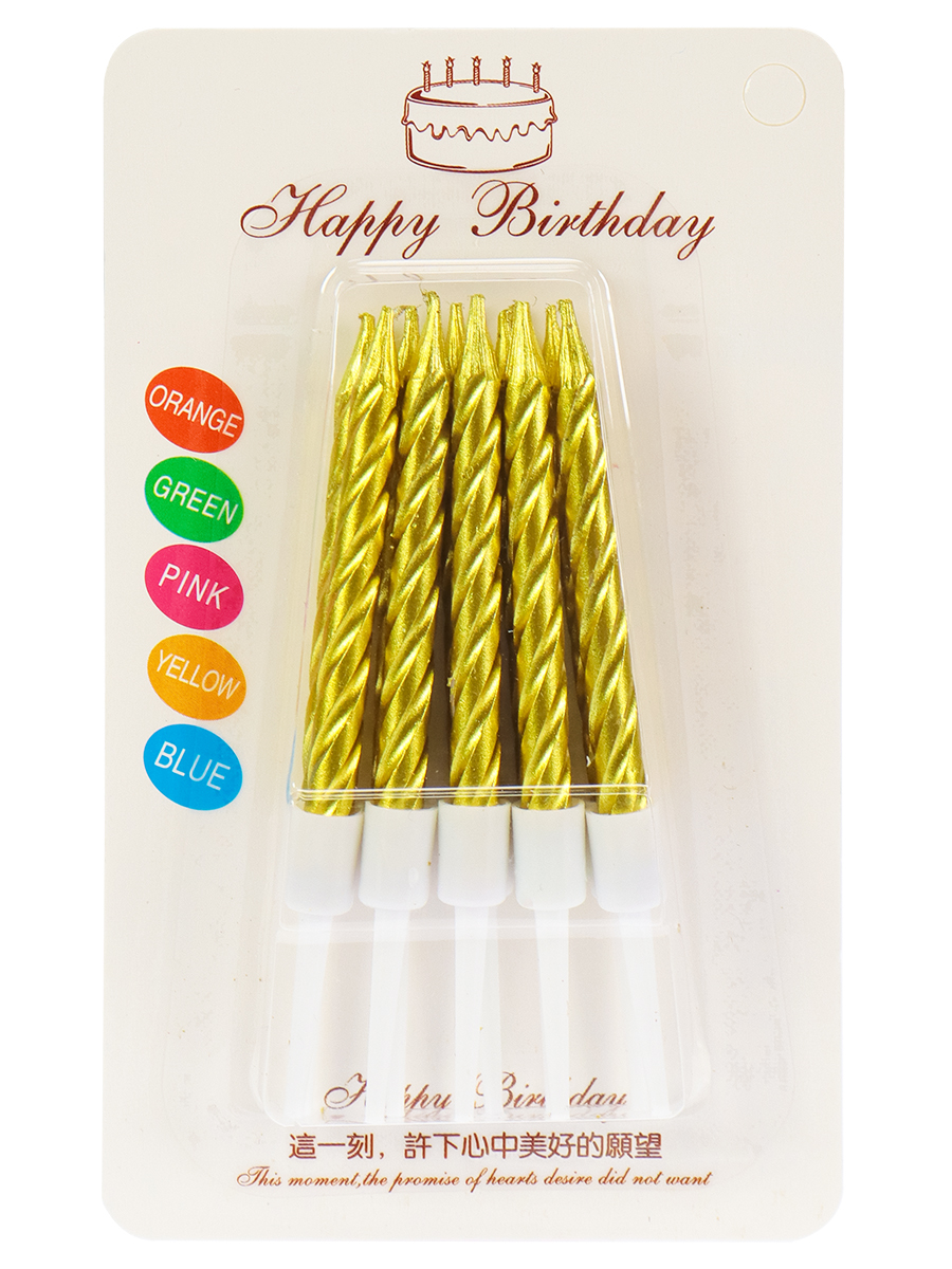 Свечи для торта Счастливый праздник, Золотые (10 шт;уп), с подставками С-2985