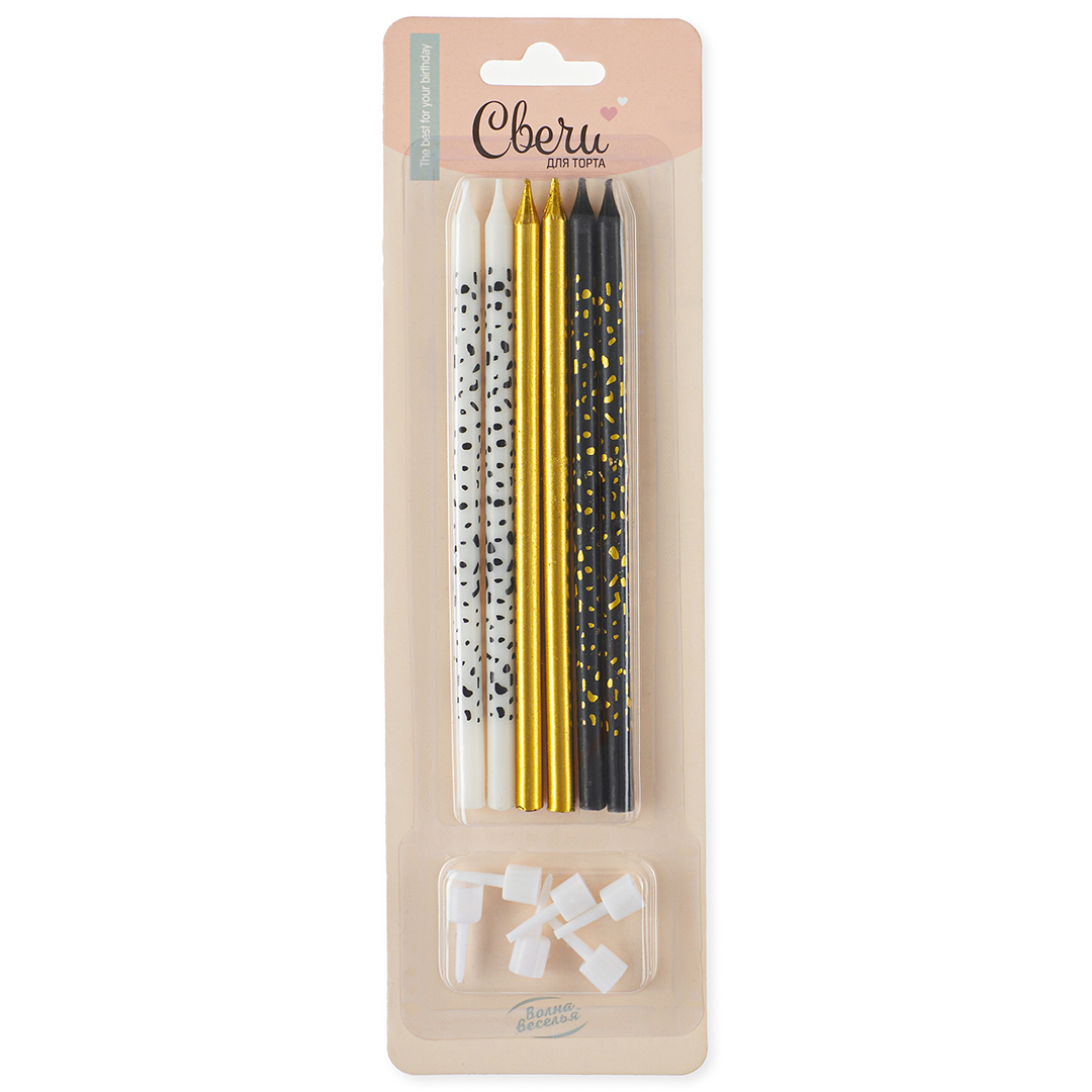 —Свечи Модный Микс, Ассорти. Металлик, 0,5х12,5 + 2 см, 6 шт с держат, 803010