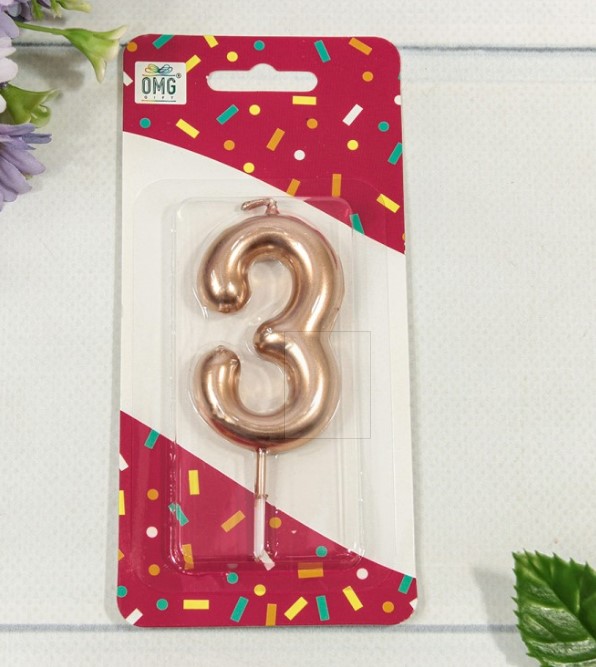 Свеча для торта Цифра 3 Бронзовый 6 см, 20010-91/3