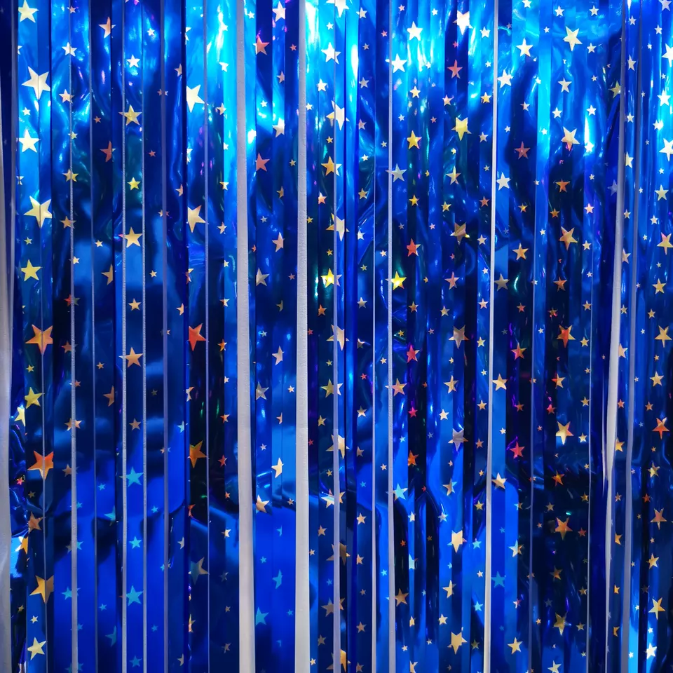 Занавес Дождик Звезды, Синий, Металлик 100х200 см, 1 шт., 6014400